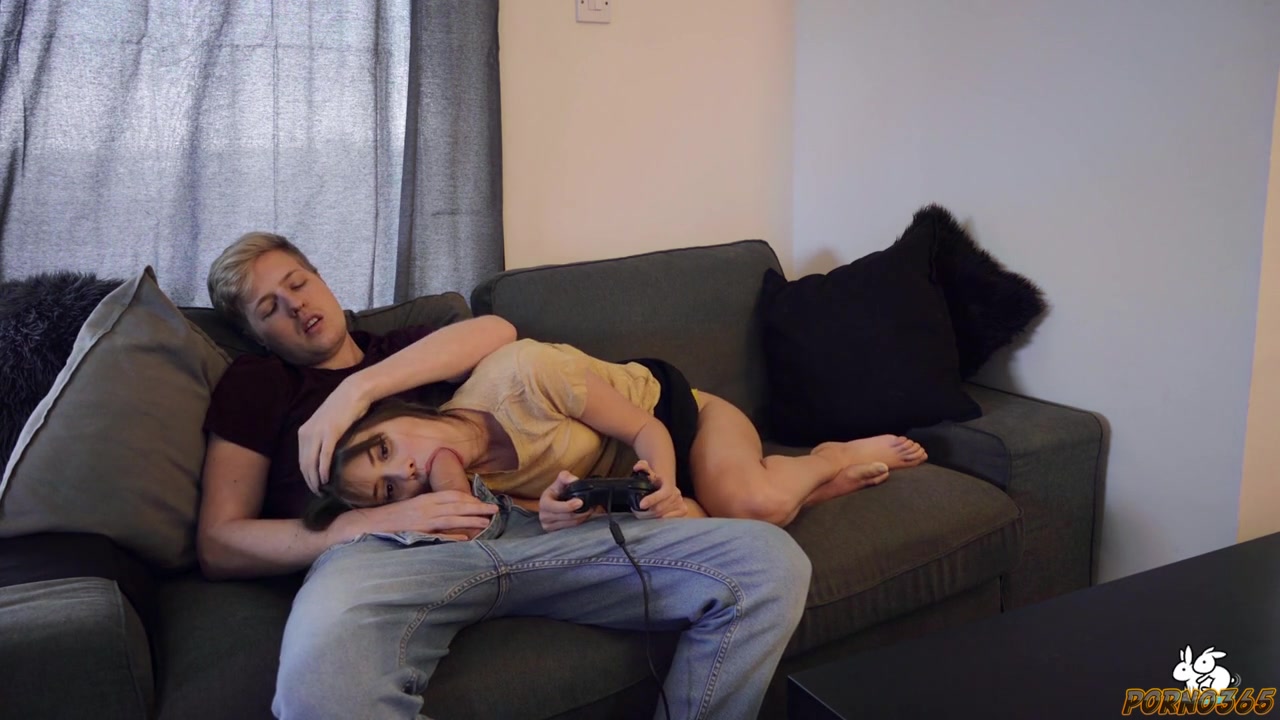 Молодая геймерша сосет пикаперу член не отрываясь от игры в приставку