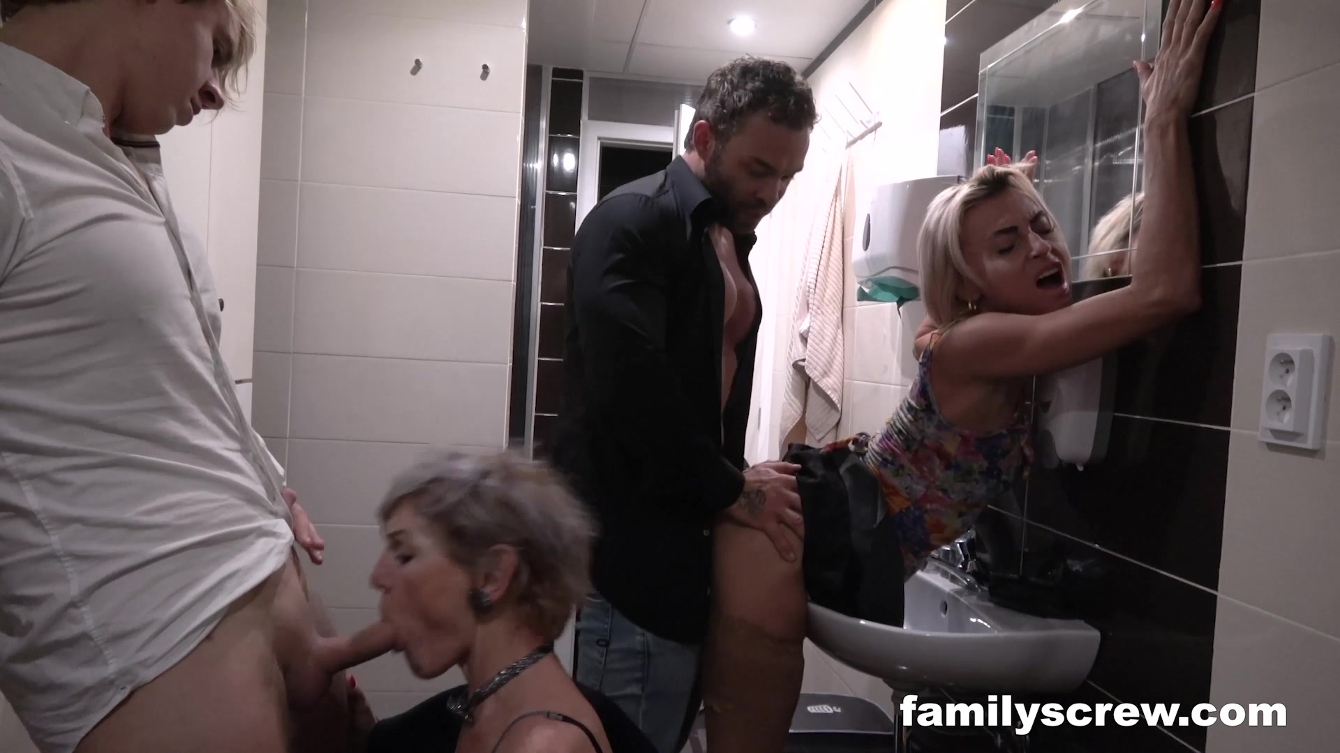 Сводные брат и сестра трахаются на столе за спиной у мамы и папы